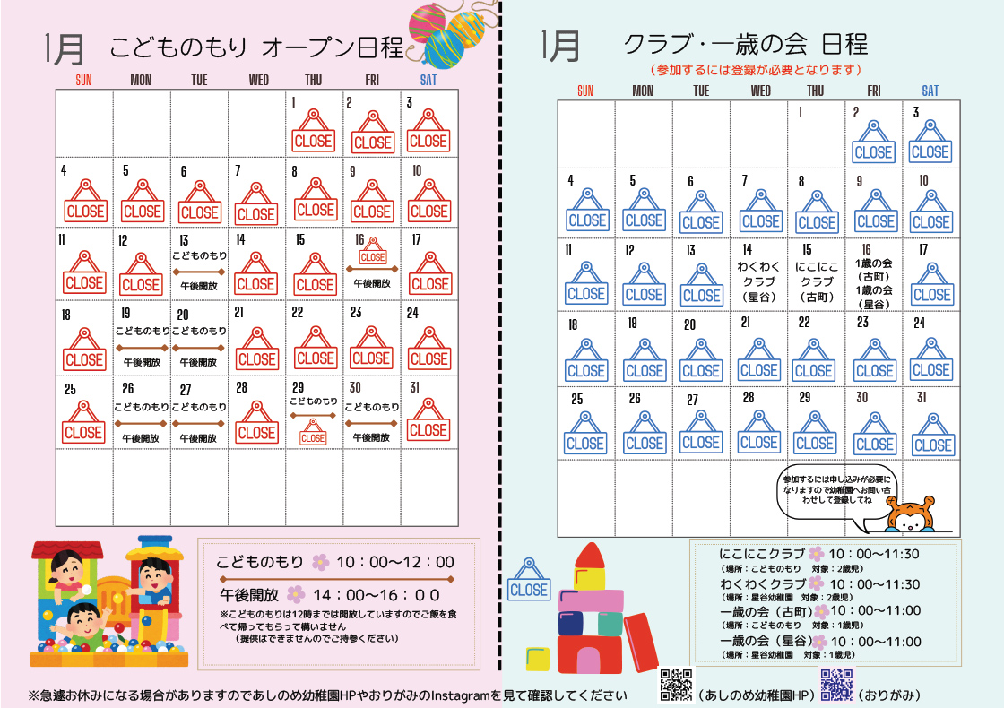 | 場所 | 子育て支援センター「こどものもり」または葦の芽幼稚園(0226-24-0583)(0226-24-0583) |